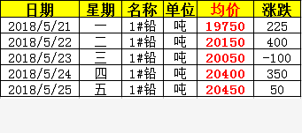 上周鉛價(jià)上漲925元,同比上漲4650元。